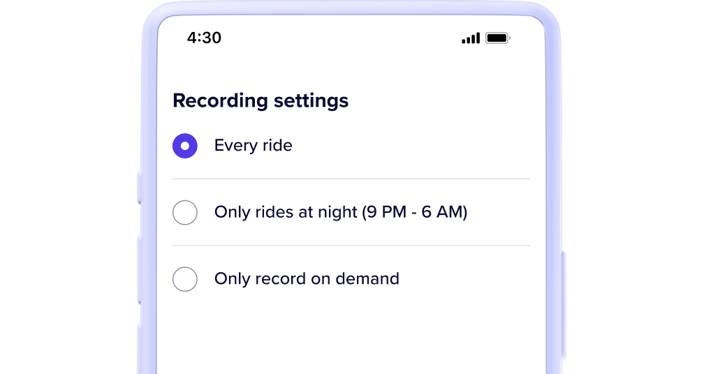 With our latest tool, Audio Recording, riders and drivers can record audio during a ride in the Lyft app. Schedule recordings in advance, or start them when you want — it’s up to you. Your recordings are private unless you choose to share with Lyft’s Safety Team.