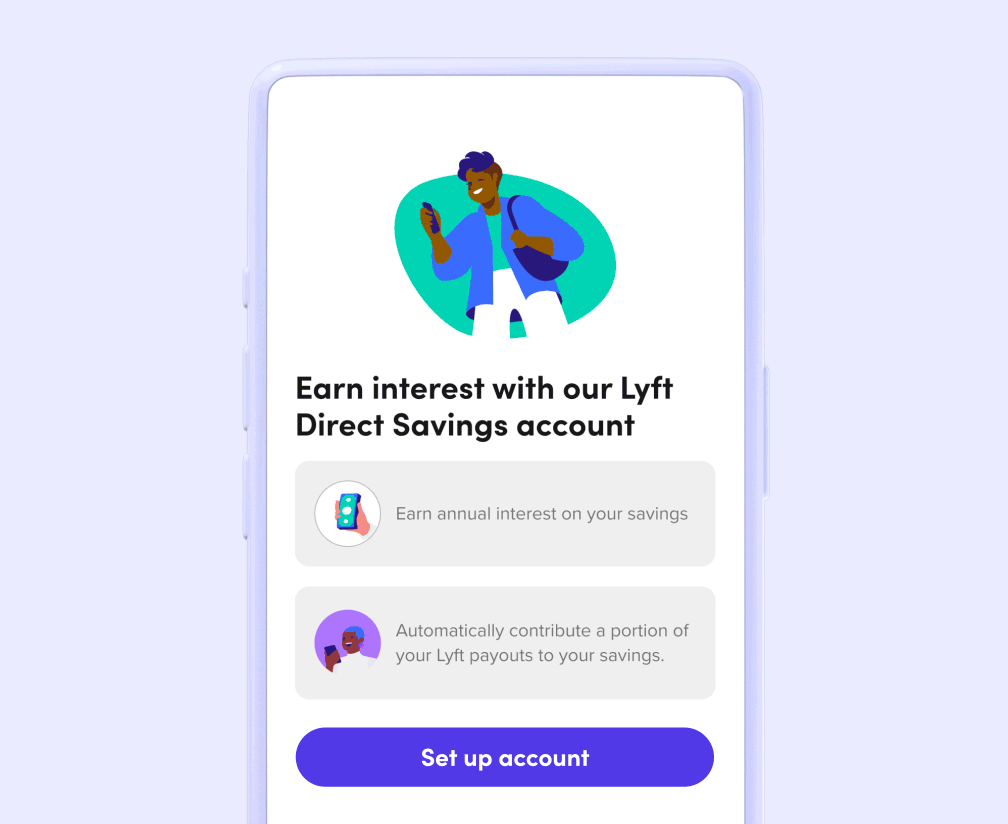 Earn up to 3% interest* when you opt into the Lyft Direct Savings account in your banking app.