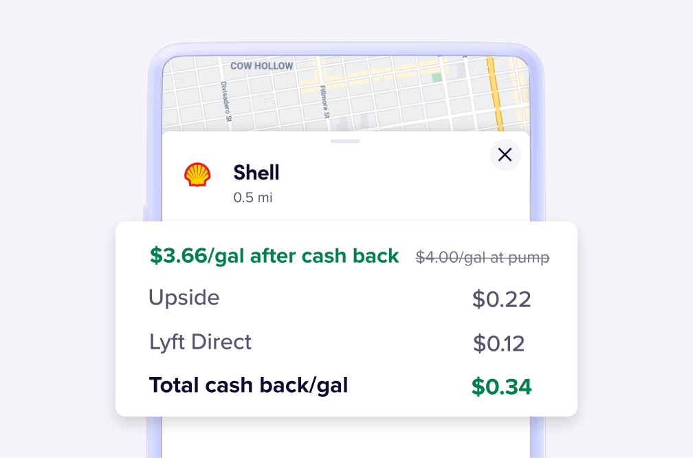 Lyft Rewards is even better with the Lyft Direct business debit card. The higher your tier, the more cash back you’ll earn on gas and EV charging through Lyft Direct. That’s on top of the savings you get thanks to our partnership with Upside.