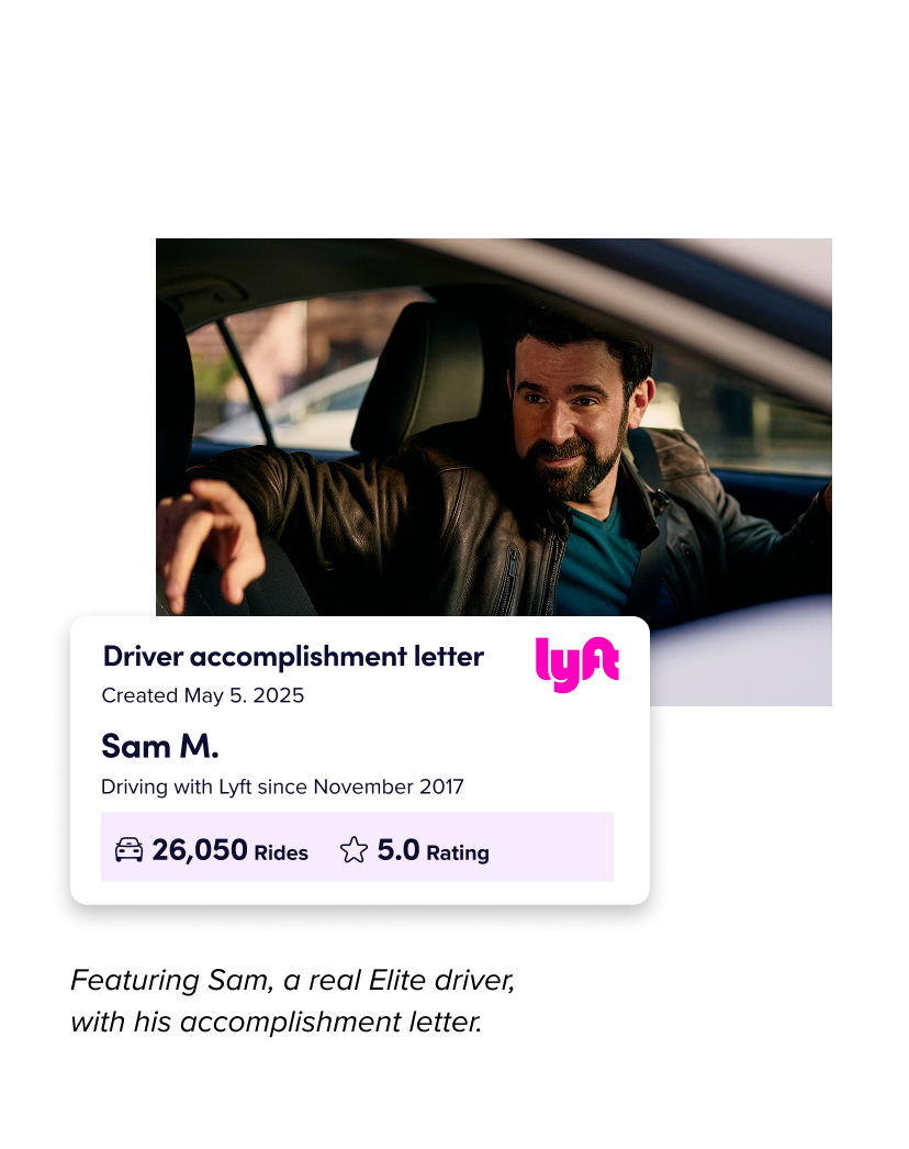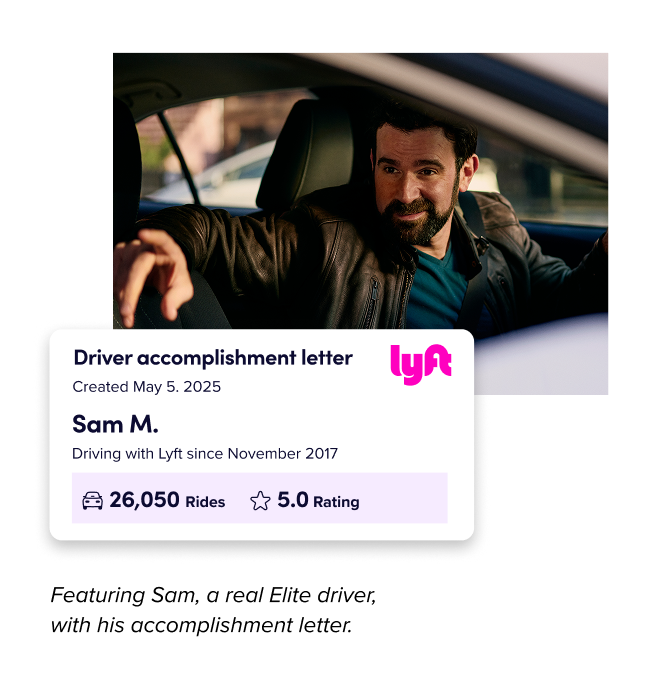 Show the impact you've made on the road in an accomplishment letter, whether you’re applying for a new job or a new home. It’ll be personalized with your driving history, rider feedback, and more.5